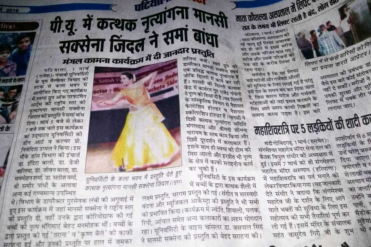 Performance on DD National channel, Delhi press media